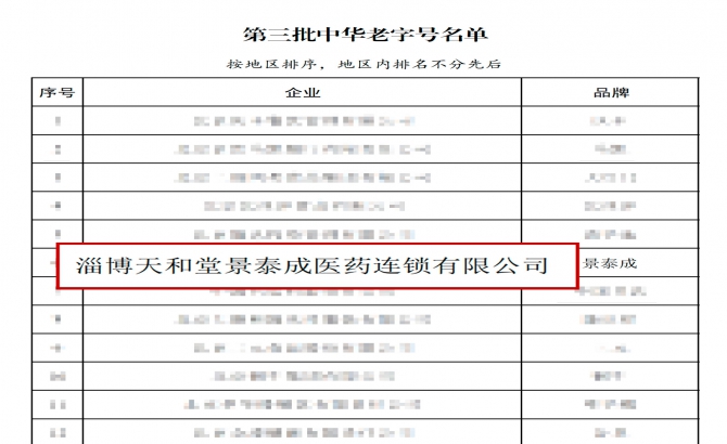 淄博天和堂景泰成醫藥連鎖有限公司,其歷史最早可以追溯到127年前的清光緒年間,公司成立于2003年11月27日,是博山區最大的醫藥零售連鎖企業,是市、區、高新開發區醫保定點刷卡單位、慢性病定點零售藥店、淄博市首批特藥定點零售藥店、腎移植抗排異藥品特約服務單位。景泰成于2017年9月被山東省商務廳評定為“山東老字號”榮譽稱號,2024年1月被國家商務部創建為“中華老字號”。目前公司已擁有190余家直營藥店,擁有員工600余人。